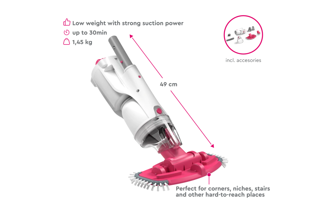 Zwembadstofzuiger, oplader en 2 filterinzetstukken met 2 jaar garantie.